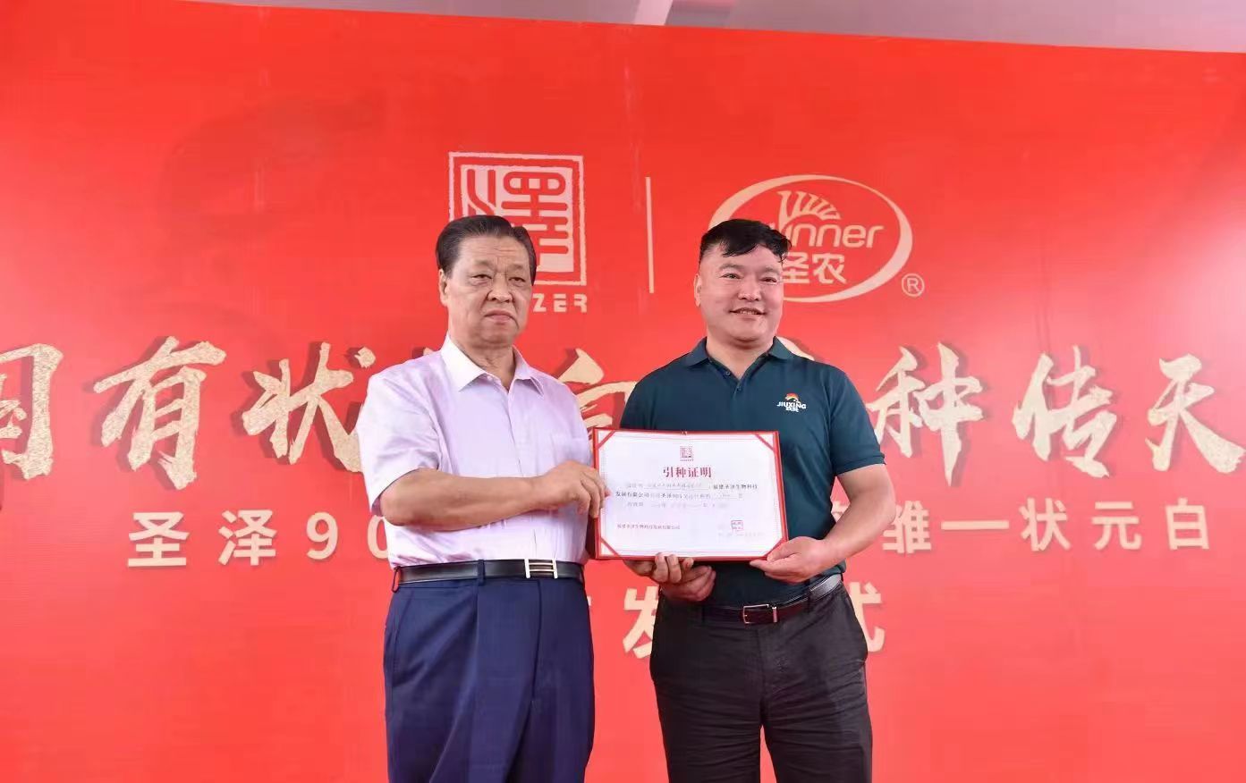 01 圣農(nóng)董事長為玖興農(nóng)牧頒發(fā)引種證明,玖興農(nóng)牧總裁孫清輝發(fā)表致辭